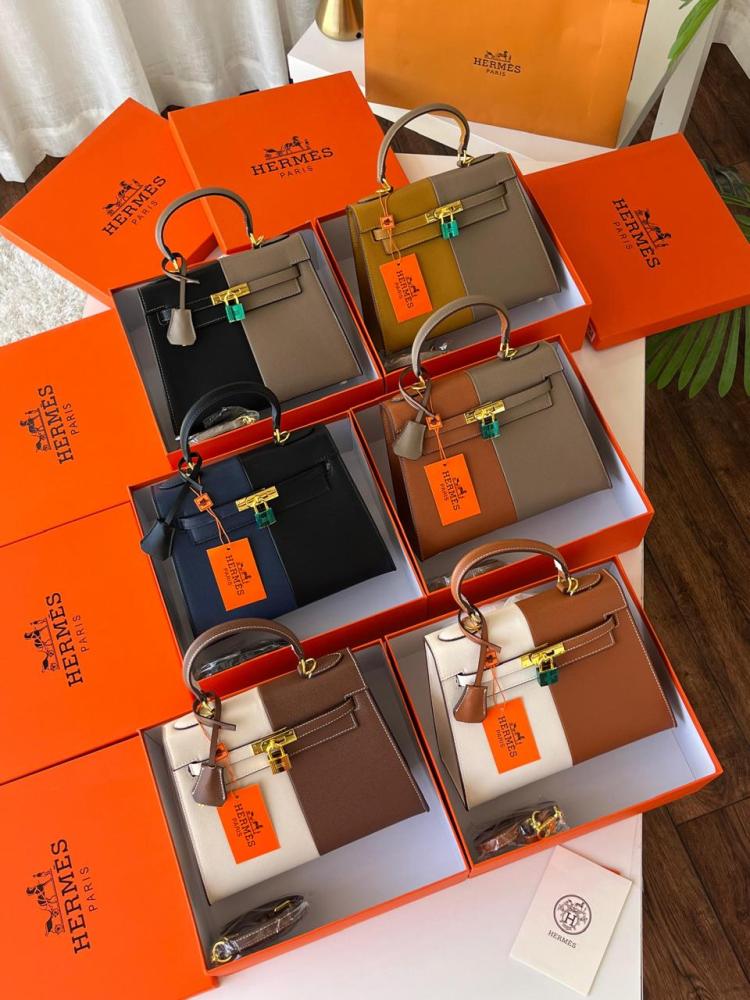 مميزات شنطه HERMES KELLY أسود + رمادي غامق